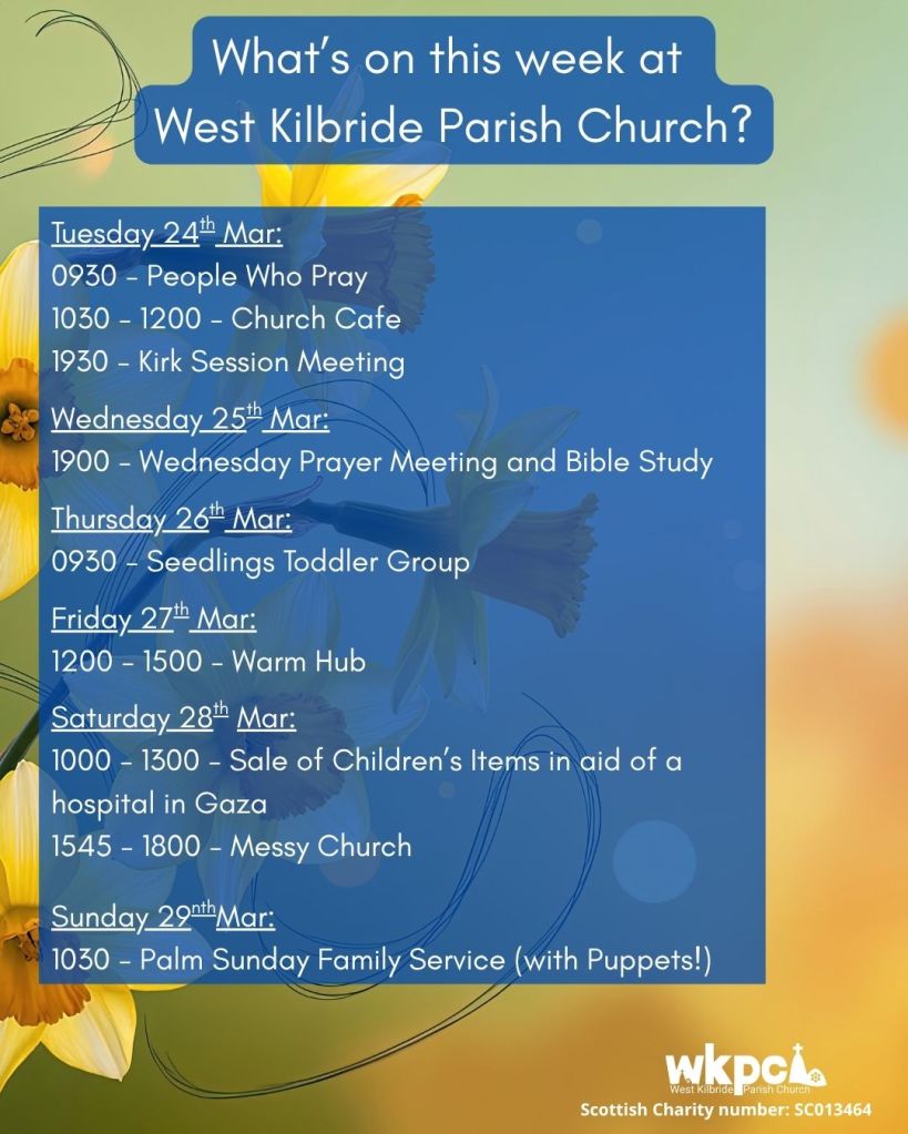 We are a Church of Scotland congregation in West Kilbride on the beautiful North Ayrshire coast. We are in the Reformed and Evangelical tradition – and believe that God’s Word still speaks into hearts and lives today – and we are passionate about sharing the Good News about Jesus to our community and beyond. Our vision is ‘To know Jesus and to make Jesus known’.
